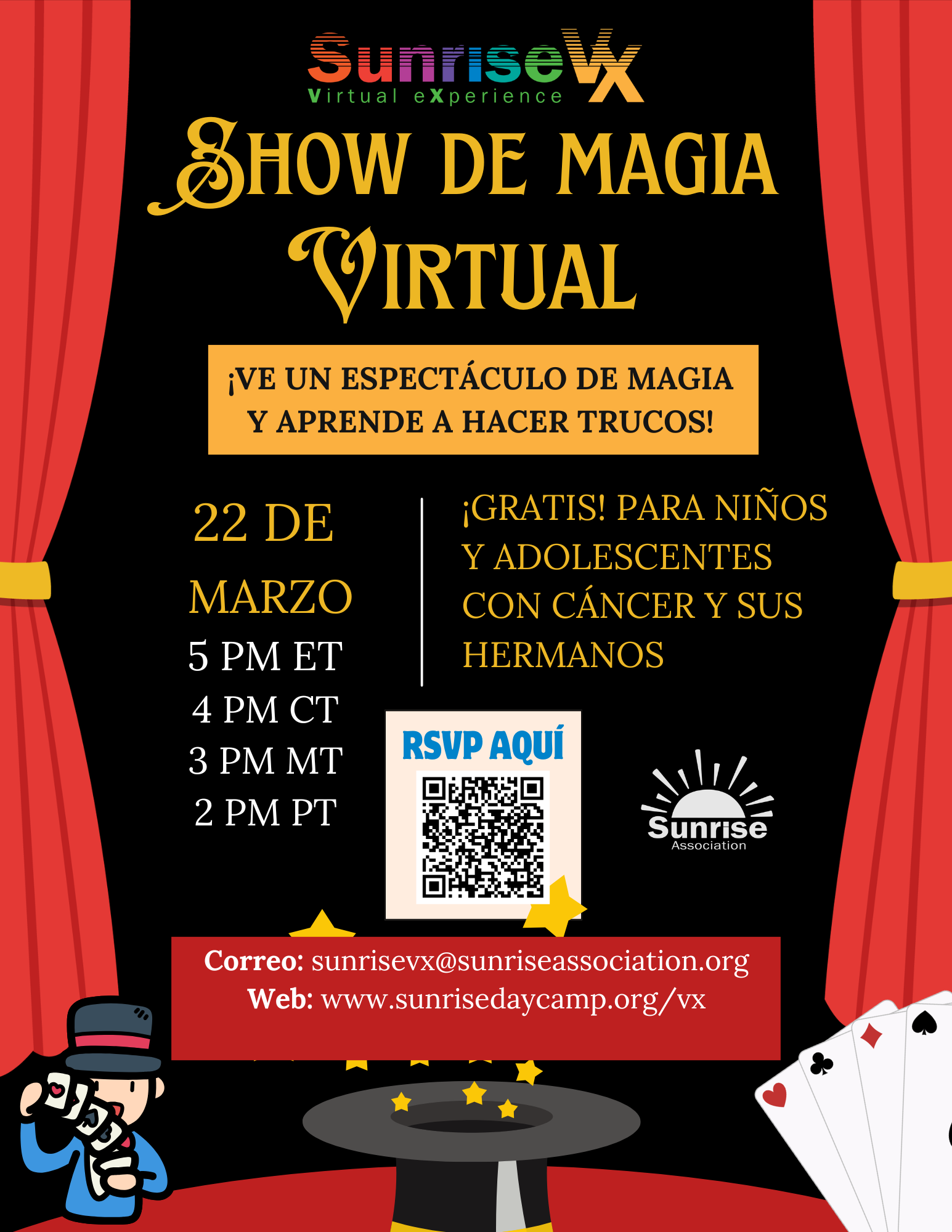 SunriseVX is a virtual camp experience for children with cancer and their siblings, ages 3 1/2 to 16 — 100% free of charge. This interactive virtual camp brings the joy of summer to children wherever they are. SunriseVX is a proud member of the Sunrise Association which has enriched the lives of over 20,000 kids since 2006. We offer year-round programming and a full summer day camp!